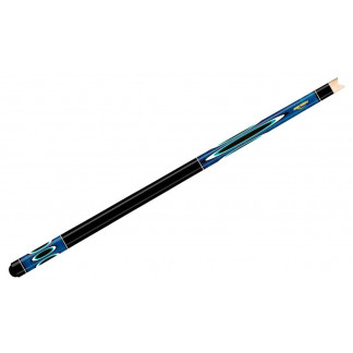 La flèche de la queue de billard Maxton Minerva est en érable massif (A8). Son procédé a un diamètre de 11 ou 12 mm, selon le poids de la queue. Le fût de la Minerva 6 est également en érable et peint en bleu au-dessus et en dessous de la poignée. Il est orné d'un magnifique motif imprimé aux UV représentant du bois naturel et des pierres bleues. La poignée est peinte en noir. La queue de billard Minerva, composée de deux pièces, possède une virole en polycarbonate de 10 mm et un joint en bois avec une bague en plastique noir de 25 mm.