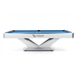 La table de billard Victory II du fabricant Rasson répond aux exigences les plus élevées. Elle est dotée d'un socle et de pieds uniques qui forment un V de chaque côté de la table. La table Victory est également équipée des systèmes SLS (Slate Leveling System) et LLS (Leg Leveling System) spécialement conçus et brevetés par Rasson, qui permettent une mise à niveau parfaite de l'ardoise et de la structure du cadre.